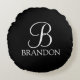 comporte un monogramme personnalisé en police script classique blanche et un nom en police serif classique blanche sur fond noir.
