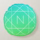 Coussins Ronds Monogramme géométrique cool | Ombre Vert bleu et c
