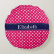 Coussins Ronds Monogramme Navy Blue Points Blancs Framboise