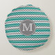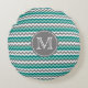 Coussins Ronds Monogramme Turquoise et Grey Chevron Zigzag