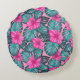 Coussins Ronds Monstera feuilles et Hibiscus Turquoise et rose su
