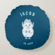 Coussin rond avec mignon monstre blanc sur arrière - plan bleu foncé