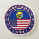 Insigne du Montana avec drapeau du Montana et drapeau des Etats-Unis couleurs, forme arrondie. Emblème du Montana. Sceau du Montana. Collection USA Etats.