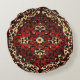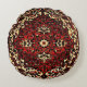 Design de tapis orientaux en rouge foncé et couleur crème - une image antique est IMPRIMÉE sur ce coussin rond - une illustration tirée d'un livre antique - il a été édité et appliqué sur divers articles par Alma Wad.