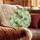 Coussins Ronds motif Brown vert corde feuille
