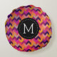 Coussin ronde avec motif géométrique coloré avec monogramme.