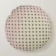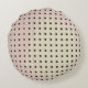 Le motif original de ce Coussin Rond est exactement ce qu'on appelle, un motif de grille fait d'une photo originale de l'arrière d'une chaise. Des points carrés gris foncé et marron dans les rangées de la grille. Les lignes courbent légèrement comme le chaise. Tout près, les petits points carrés sont des trous aux coins arrondis et une dimension d'ombre autour des bords supérieur et droit. Les couleurs du corps de la chaise sont des tons muets de la nature, vert sauge pâle se mélangeant à du mauve pâle, puis doux, marron sablonneux, qui semblent avoir été peints sur. Ce design abstrait, aux couleurs sophistiquées, a un look très moderne.
