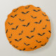 Cute Halloween chauves-chauves-souris oranges et noires surlignées de blanc motif rond lanceur d'oreiller décoration.