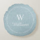 Motif Botanique Bleu Personnalisé Milgrain Coussin. La bordure pointillée rappelle le milgrain, qui est une technique de détail de bijoux souvent utilisée pour les anneaux fiançailles et mariages. La bordure milgrain ajoute un style moderne et élégant à ce coussin.