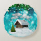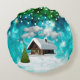 Beau et décoratif Oreiller rond Avec Cottage Neige de Noël & Lumières Bokeh Turquoise Design - Idéal pour Décor de Noël!