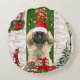 Pekingese Chien Noël assis à l'extérieur de la maison décorée avec la couronne de Noël, le sapin de Noël est une idée cadeau de Noël parfaite pour les amoureux de les chiens.