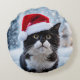 Chat noir et blanc mignon portant un chapeau de Père Noël.