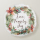 Coussins Ronds Noel Rustique Holly Poinsettia Wreath Monogramme