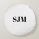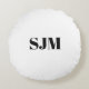 Simple moderne minimaliste élégant moderne moderne noir et blanc Paraphes personnalisées nom Coussin rond. Texte noir personnalisable, arrière - plan blanc uni.