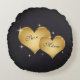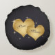 Coussins Ronds Nom de deux coeurs d'or élégants