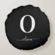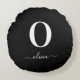 Coussins Ronds Nom de script Monogramme Personnalisé Noir Et Blan
