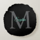 Coussins Ronds Nom de script sarcelle, grand monogramme gris sur