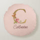Coussins Ronds Nom personnalisé Or Foil Roses Blush Rose Lettre C