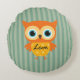 Oreiller rond de nurserie élégante chouette jaune ligne verte.