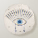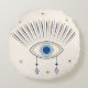 Le mauvais oeil, symbole de protection et d'énergie positive, est astucieusement mélangé à des éléments célestes, ce qui en fait un puissant talisman qui enlève la négativité et la tranquillité des invitations dans votre espace sacré. Le Coussin rond à oeil à double face présente des étoiles, des cristaux et un oeil maléfique à l'intérieur du troisième oeil avec des couleurs d'or et de blues.