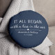 Où tout a commencé... Coussin mignon représentant l'endroit et la date où vous vous êtes rencontrés, avec un cœur adorable. Choisissez votre couleur et personnalisez ce design sur mesure avec vos noms et votre texte. Cadeau idéal pour raconter votre histoire d'amour à la Saint-Valentin, votre anniversaire de mariage ou votre mariage, et célébrer le début de quelque chose de spécial.