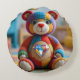 Cette pièce d'art en feutre charmante et vibrante, créée principalement par le feutrage d'aiguille, représente un ours en peluche joyeux en patchwork assis joyeusement dans la salle de jeu d'un enfant. Fabriqué en laine de couleur vive, roving dans les tons de rouge, bleu, jaune, vert, violet et orange, l'ours dispose d'une texture crochetée avec des points visibles reliant les taches de couleur. Son visage sucré a des yeux noirs en forme de perle ou feutre et un nez rouge vif en forme de coeur. Les pattes sont agrémentées de coussinets feutrés blancs, et son ventre présente un diamant de prisme méticuleusement feutré à l'aiguille, fabriqué à partir de fibres en couches blanches, irisées et ressemblant à de la soie, créant un effet pétillant et facettisé qui capte la lumière. Assis au-dessus d'un tapis de jeu coloré à la mousse feutrée, cette pièce joyeuse évoque la chaleur, le plaisir tactile et l'émerveillement de l'enfance, dressé contre un arrière - plan de chambre d'enfant doucement floue.