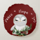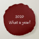 Quelle année ça a été ! Voici un mignon coussin de vacances qui résume 2020 qui dispose d'une aquarelle long pingouin blanc avec masque facial, blanc "Paix, joie, espoir" texte et boughs de noël evergreens sur arrière - plan rouge foncé. Personnalisez avec le nom ou un autre message sur le dos.