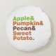 Pomme & Citrouille & Pecan & Potato Sucrée. Globe Trotters se spécialise dans l'imagerie idiosyncratique du monde entier. Vous y trouverez des Cartes de Voeux, Cartes Postales, Affiches, Caisses Téléphoniques, Stickers, Mousepads et plus encore.