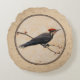 Detailed painting of a Pileated Woodpecker sitting on a tree branch, accented by a matching tan patterned background.