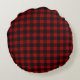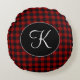 Oreiller Rond à Monogramme Simple Script Plaid Buffalo Rouge et Noir