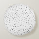 Coussin rond monogramme élégant et moderne, avec motif pois noir avec étiquette à bout de pétoncle. Ce coussin minimaliste personnalisé sera parfait comme un cadeau.