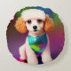 Coussins Ronds Poodle blanc avec oreilles de crème sur arc-en-cie