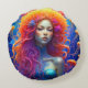 Portrait d'une fille de Atlantis Round Cushion. Un beau coussin aux couleurs vives pour égayer une chambre à coucher au style Atlantis.