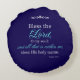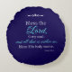 Add a touch of inspiration and elegance to your space with this round throw pillow featuring the beloved Bible verse, “Bless the Lord, O my soul: and all that is within me, bless His holy name.” (Psalm 103:1). Set against a navy blue background, the verse is beautifully displayed in soft teal and crisp white lettering, creating a calming yet bold statement of faith.