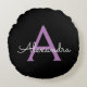 Coussins Ronds Purple Black Script Girl Nom du monogramme