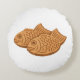 A minimalist cushion featuring taiyaki, a traditional Japanese fish-shaped pastry, illustrated in a calm, flat style.