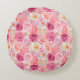 Un joli coussin rond floral de couleur rose, blanc, rose rosé et magenta