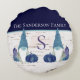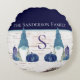 Round pillow. Rustic Fall Autumn Gnome Navy and Dusty Blue pumpkins. Our Personalized products are great gifts for any reason.