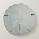 Plage de sable rond et réaliste lancer oreiller. Le coussin décoratif a un arrière - plan d'eau de mer qui montre à travers les trous dans la grande image de dollar de sable. Parfait ajout à n'importe quelle maison de style côtier ou maison de plage. Ou choisissez le coussin tout blanc ci-dessous.