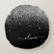 Parties scintillant à étincelles noir et argent Script Monogramme Nom Coussin Pouf. La coussin fait le cadeau parfait pour 16 ans, mariage, douche nuptiale, baby shower ou bachelorette pour quelqu'un décorant sa chambre en or rose.