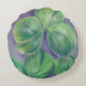 Ce coussin rond est rempli de part et d'autre d'oeuvres d'art pastel représentant trois trèfles en feuilles ou de shamrocks en vert tendre sur un arrière - plan violet. Le shamrock est un motif parfait pour la Saint Patrick’s Day et un symbole de l’Irlande.