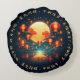 Add an Asian touch to fall home decor with a few of these enchanting Mid-Autumn Festival-themed round throw pillows, which feature reflections of red and gold lanterns rising in a starry night sky accompanied by a full moon, fluffy clouds, and a tranquil lake. Customize greetings in Chinese. Reverse shows identical design.