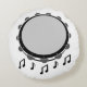 Vue frontale d'un tambourin noir et blanc avec texte changeant, qui serait idéal pour le monogramme. Des notes musicales ont été ajoutées au fond de l'instrument de musique.
