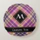 Design rose, jaune doré et écossais bleu. Motif sans couture. Texte et monogramme personnalisés.