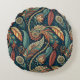 Ce coussin motif ethnique semi-abstrait présente des tourbillons de plumes, de fleurs et de cachemire comme des formes de turquoise poussiéreux, de terre cuite, de rouille, de bleu profond et de crème. Cette impression de style vintage s'adapterait à une variété de couleurs et de styles de décoration, avec un motif avec des tourbillons audacieux dans les tons muets. Le design est le même des deux côtés de ce coussin rond, et il est disponible en plusieurs tissus.