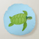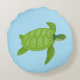 Coussins Ronds Tortue de mer verte sur arrière - plan turquoise