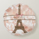 Coussins Ronds Tour Eiffel personnalisée Blanc, marbre or Rose