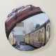 Un design artistique d'un train à vapeur et de chariots rouges et jaunes qui attendent à la gare.