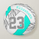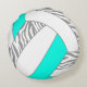 Ce joyeux coussin rond zèbre rayé pour filles volleyball dispose d'un motif zèbre gris et blanc sauvage sur quatre des panneaux de volleyball plus personnalisable nom du joueur et numéro de maillot - vous pouvez customiser la couleur arrière - plan, montré ici en bleu turquoise, et les couleurs de texte, montré ici en bleu turquoise et gris - cliquez sur "Customiser" pour changer facilement l'arrière - plan et des couleurs de texte pour les assortir ou les mélanger avec des couleurs différentes ! par katz_d_zynes