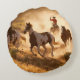 Coussins Ronds Two western cowboys riding horses, roping wild hor